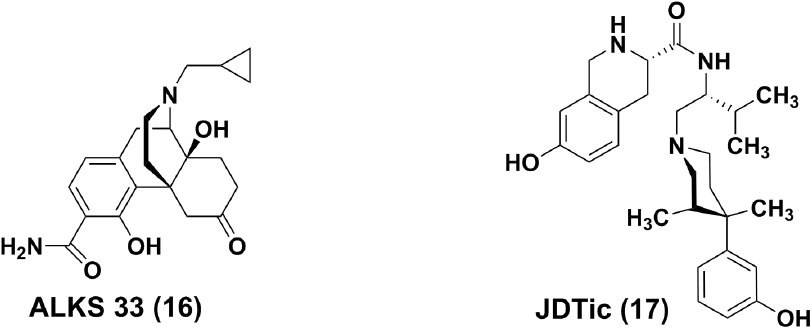 ALKS 5461, a fixed combination of buprenorphine and ALKS 33 (samidorphan, 16) for sublingual administration, has been developed by Alkermes as a potential treatment for patients with MDD not responding to SSRIs or SNRIs. ALKS 33 is a full MOR antagonist, which was employed to reverse the known side effects induced by the Mu opioid component of buprenorphine. In a randomized, double-blind, placebocontrolled phase II study in subjects with major depressive disorder (ClinicalTrials.gov Identifier:NCT01500200), ALKS 5461 demonstrated evidence of efficacy in patients with MDD not responding to SSRIs or SNRIs. Moreover, a substantial effect was attained after treatment for seven days. ALKS-5461 was granted Fast Track Designation by the Food and Drug Administration (FDA) for treatment resistant depression in October 2013. Phase III trials were initiated in 2014 and the preliminary results were favorable. If ALKS 5461 were to be authorized successfully in late 2016 or 2017, it might meet some medical need for patients inadequately controlled by SSRI and SNRI monotherapy.