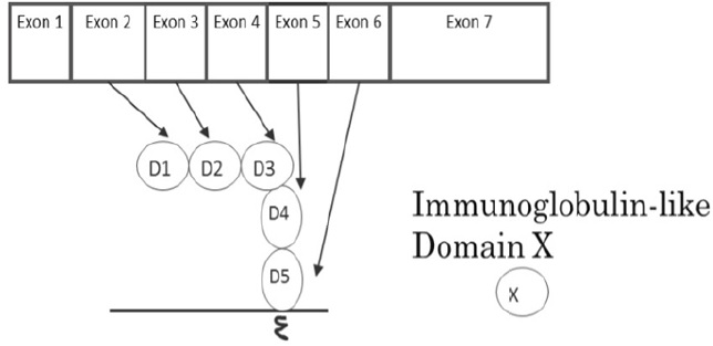 Figure 1: The relationship between ICAM-1 exons and immunoglobulin-like domains.