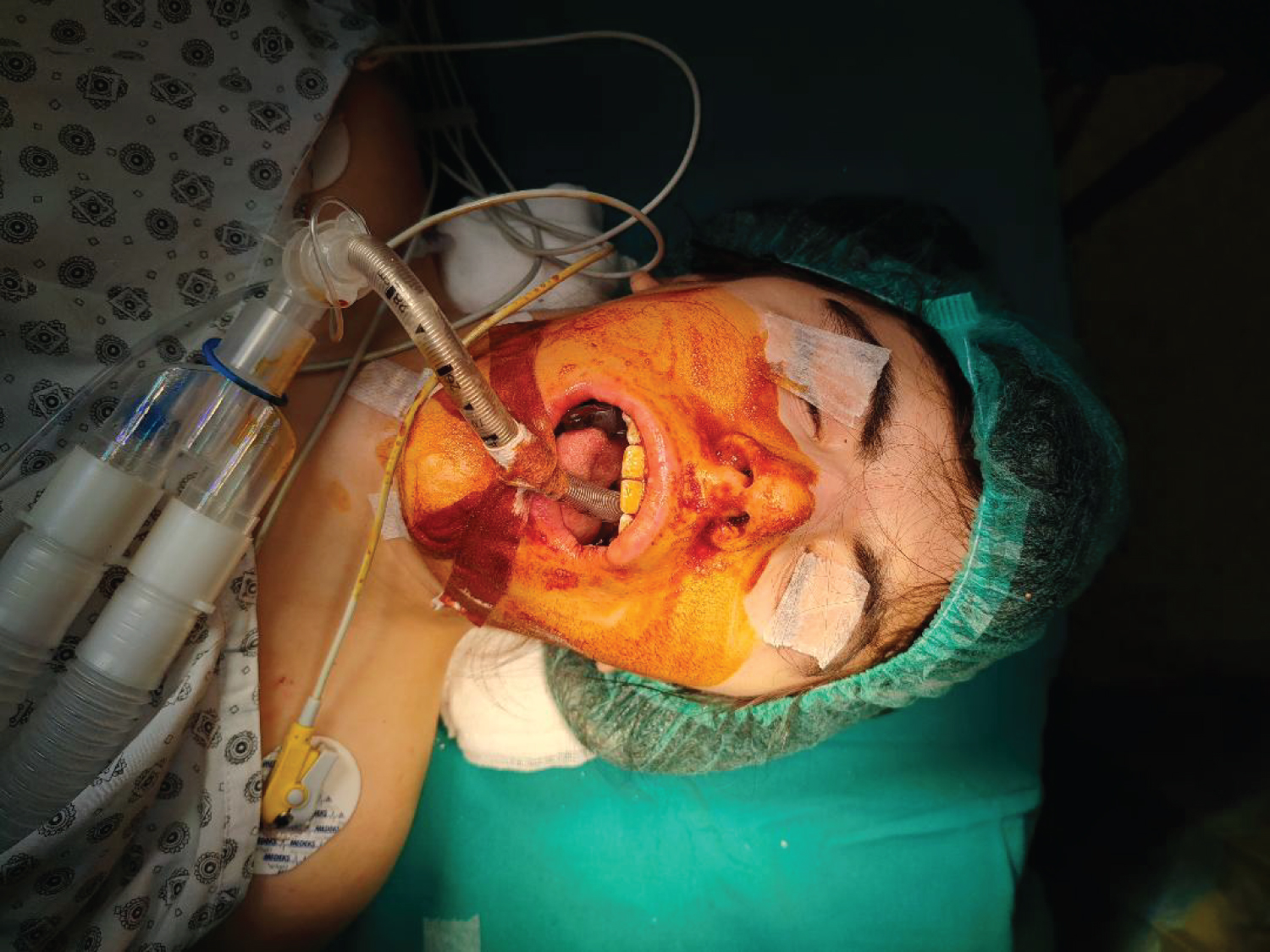 The patient was evaluated preoperatively with a comprehensive multidisciplinary approach. Because of the patient's mental state and poor cooperation, oropharyngeal examination and Mallampati airway scoring were unsuccessful, and the patient's American Society of Anesthesiologists (ASA) physical classification was class II.