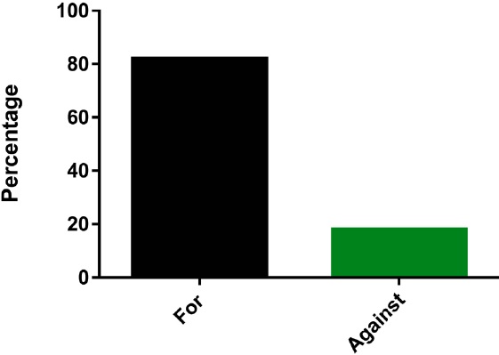 Figure 2: Percentage of supporting a change to propofol from ketamine for obstetric general anesthesia