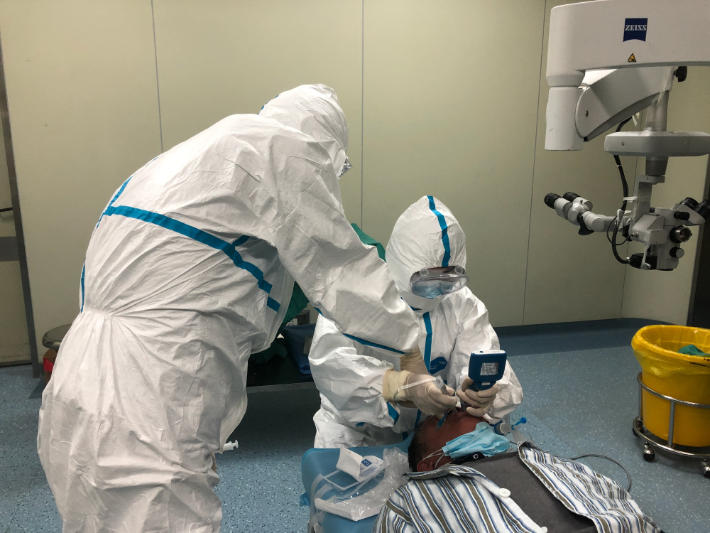 Figure 3: Department (Anesthesiology) and provider's name (Hongbo Zheng) are written on the gown. This photo is retrieved from the public news report [13].