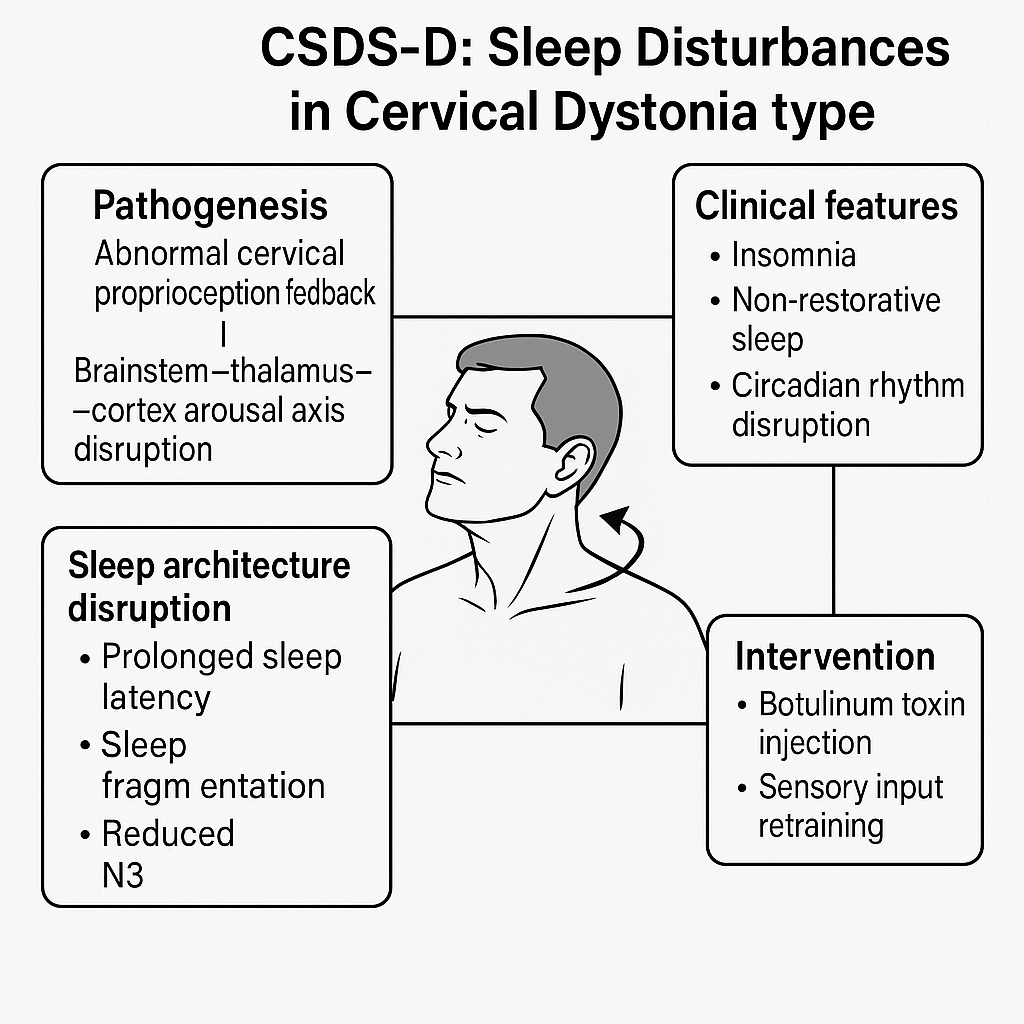 CSDS, as a novel interdisciplinary pathophysiological construct, elucidates how cervical spine and associated soft tissue abnormalities may systematically disrupt sleep architecture and function. It adds an anatomically grounded subtype to the classification of insomnia and supports future work in mechanism-based research, AI-assisted diagnosis, and multimodal therapeutic strategies.